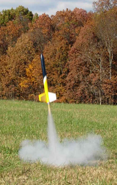 The recommended motors are A8-3, B6-4 and C6-5. Two are required for each flight. The first launch used Quest ignitors twisted together. On the second and subsequent launches Estes ignitors were used in the same manner. B6-4 engines are perfect for this bird, C6-5's work well also. There are no motor retainer clips so the engines must be taped into the mounts at the bottom to ensure ejection. We test flew the Duce on a rather windy day and she tracked straight despite some angle to the launch rod to compensate for wind drift.