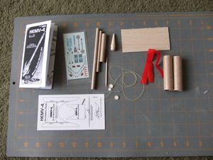 The instructions are written mostly on one side of a letter sized sheet of paper with helpful illustrations. The back side of the sheet includes a couple finishing steps as well as tips/techniques for launch preparation for those not familiar with the unique challenges of working with 6mm motors. The kit is rated as a skill level 2.5, which strikes me as about right, given the intricate tube shapes involved. I'd estimate my total build time was about 4 hours plus finishing, but that involved some issues unique to being among the first to build this product.
