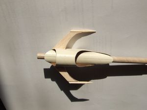 There are a couple of fins hand cut from balsa stock, which go in the gap between mating BT-20 tubes. These each get little toothpick guns as trim.