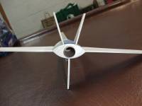 Sci-Fi design of an alien troop carrier, with a pair of high aspect ratio wings (fins) and some eye-catching craftsmanship challenges. Flies on 18mm A8-3, B6-4, C6-5, streamer recovery.