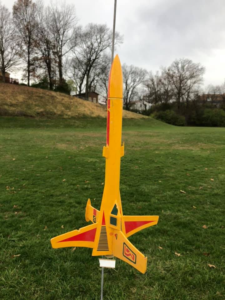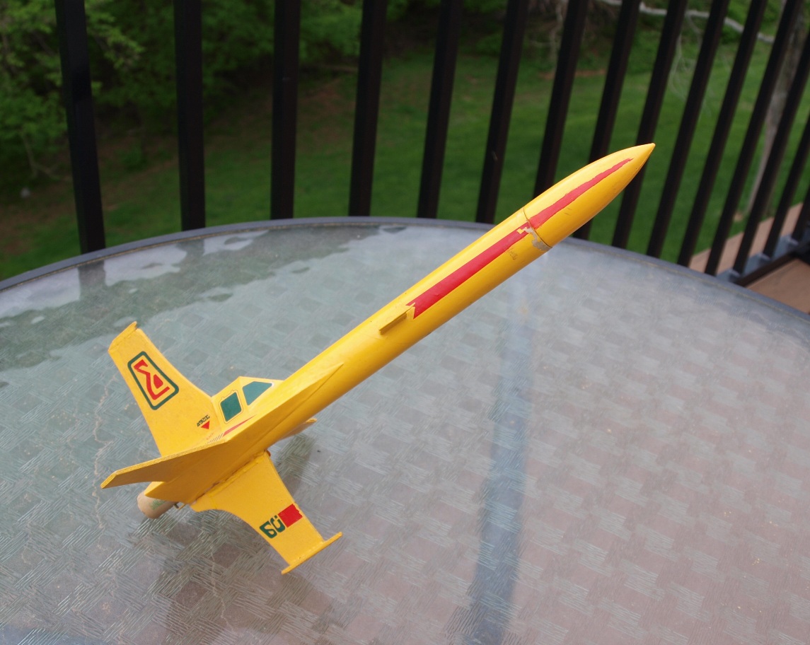 Brief: This is an Estes exotic rocket from 1983 with a 12" parachute recovery. Construction: Materials are: BT-50 body tube Plastic Alpha style nose cone 12" Parachute BT-20 x 3 for motor mount engine hook (3) toothpicks (2) sheets cardstock for printed templates Launch lug 24" 1/8 shock cord (2) sheets balsa ...