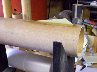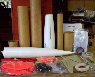 Some of you observant readers may notice that my bare airframe shots look like the tubes have fiberglass on them. Good catch! I have gotten too old to enjoy airframe repairs after completing a rocket, and I have found that fiberglassing the airframes is the best insurance against this. I could have gotten the Dyna-Wind version, and highly recommend it for those who want the additional strength without resorting to doing it yourself, but I opted to glass my tubes myself. I did this before starting construction, using one layer of fiberglass sleeving and turning the tubes on a wood lathe to sand them smooth. Just remember, fiberglassing will add to the overall weight, so you have to choose motor accordingly.