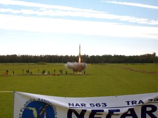 The bright yellow Crossbow got a lot of attention at Bunnell Blast, held on Saturday, November 8th and hosted by the North East Florida Rocketry Association in Bunnell, Florida, just northwest of Daytona, Florida. NEFAR enjoys acres of beautiful sod as a launch site, and are the best group to launch with you can find.
