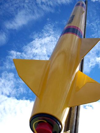 I painted the rocket outdoors, behind my shop, on a bright clear October day. Even with the still winds and clear skies, there were still a couple of kamikaze bugs who wanted to spend their lives riding rockets. Fortunately, all that got embedded seemed to be feet and legs, and some polish and wax got most of that out.