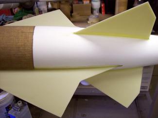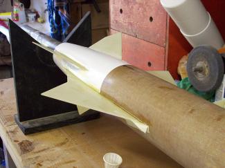 After the fins were in place and the airframe attached, it was time to fillet the fin joints.