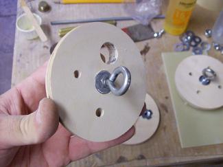 This new centering ring was epoxied to one of the original forward centering rings. No matter which way you build your Crossbow, make sure to check to see if your eyebolt/nut/washer combination clears the tail cone. I noticed mine was hitting and had to grind an area out so it would sit flush and not push the tail cone shoulder out of round.