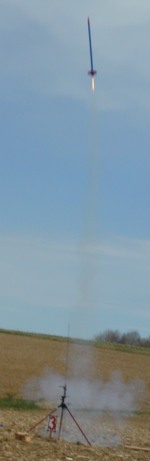 The only problem during its first launch on a Pro38 1 Grain was one I expected. In the rush to get ready for the launch I skipped adding an eyebolt to the nose cone and used the stock connection and had the nose cone part company during deployment.