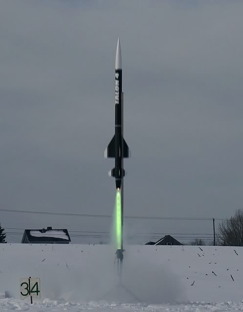 My 1st Mojave Green Motor, Temperature was 19 Degrees, Everybodys altimeters were not working right even redundant ones.No Main Deployed, Only Drouge, 24 TAC-9 landed in soft snow Not a Scratch! :)