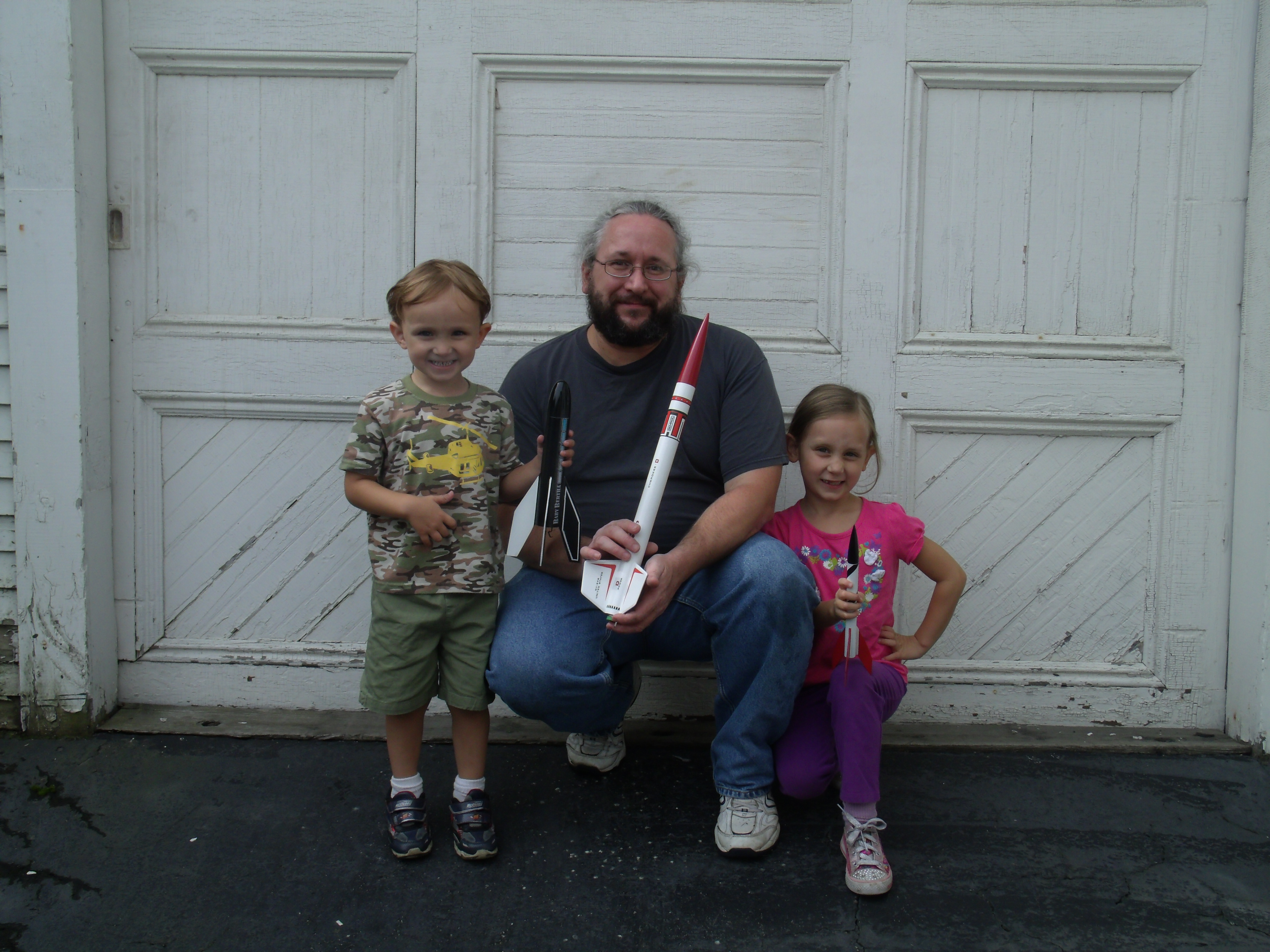 All three assembled. I let them 'decorate' the white painted body of the 'Freedom' with markers, bought engines and.... found out that 20+ years of neglect and leaking batteries had ruined my Launch controller.