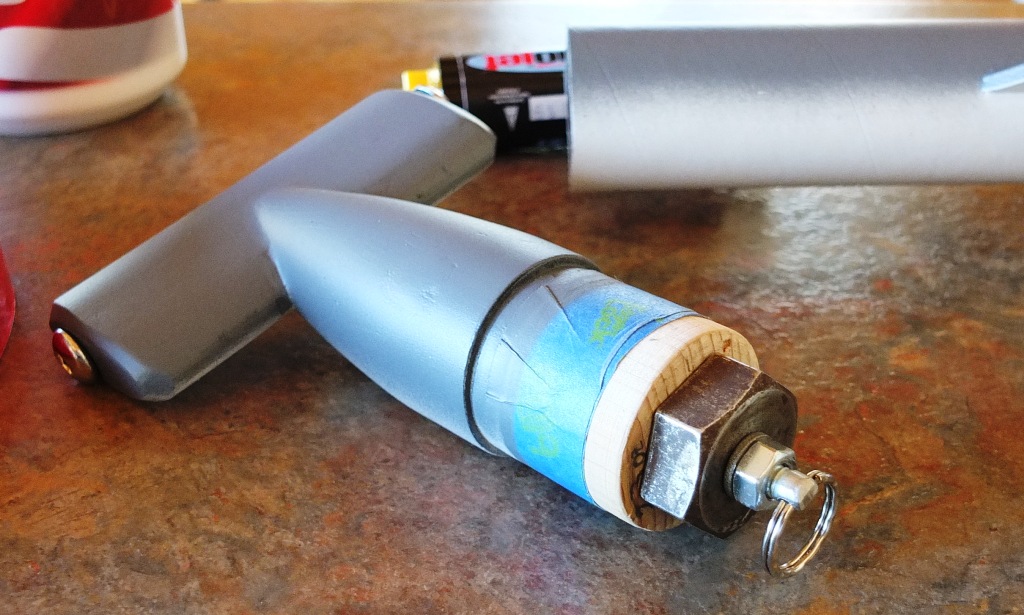 This rocket needs a lot of nose weight. I ended up using a 3/4" Machine Screw that threads into the bore of the nose cone.