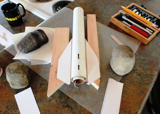 I used a couple of techniques on this rocket that were new to me: Papering fins and Through The Wall (TTW) fins.