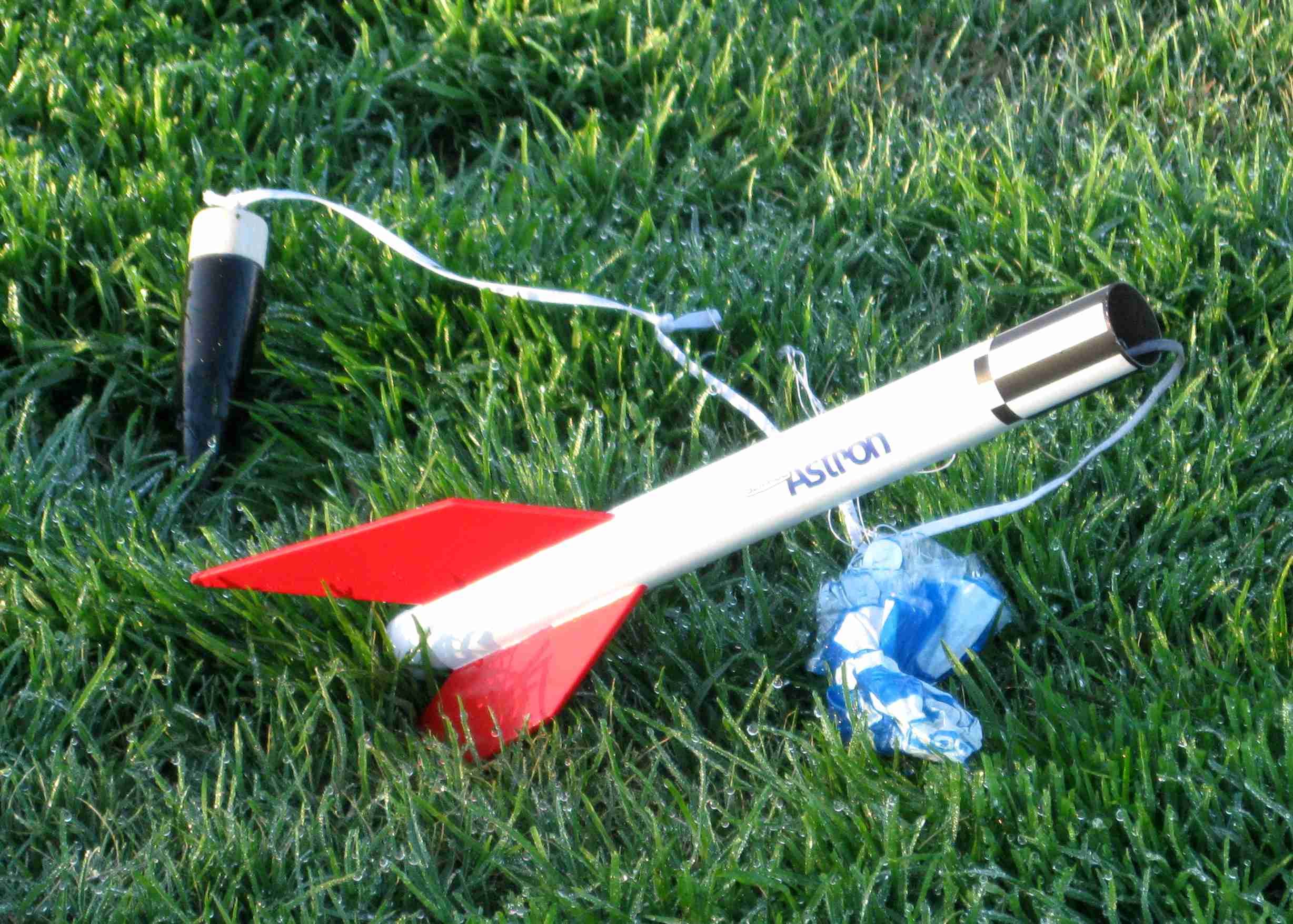Great stable boost, a real improvement over my first A6-4 "land shark" launch with the R.O.C.K. group. Lots of soot at the top of the engine and inside the rocket body. Reefed parachute brought it back fairly close.