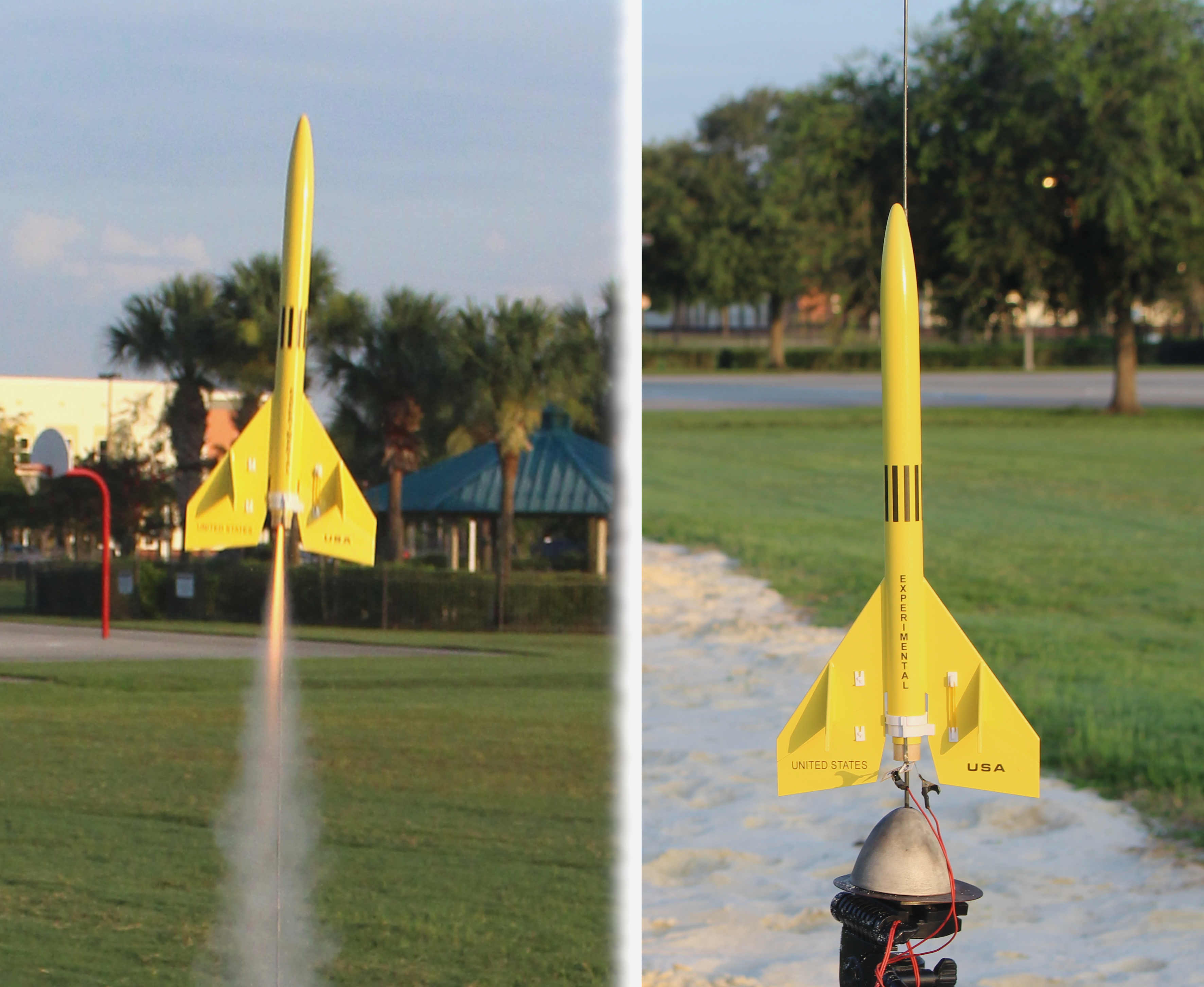 There was some turning during boost. Ejection popped out the engine mount, the vanes flipped putting it into a fast spin. It came down faster than I expected, but still safe. The streamer on the engine mount unfurled and was easy to follow and find.