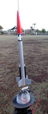 All was good until ejection when the round elastic shock cord burned through. Nose cone and body came down separately. Easily repaired.