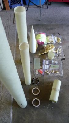 34" upper section FG airframe tube, a 1.5" FG mid-section airframe with a 10.5" FG coupler/electronics