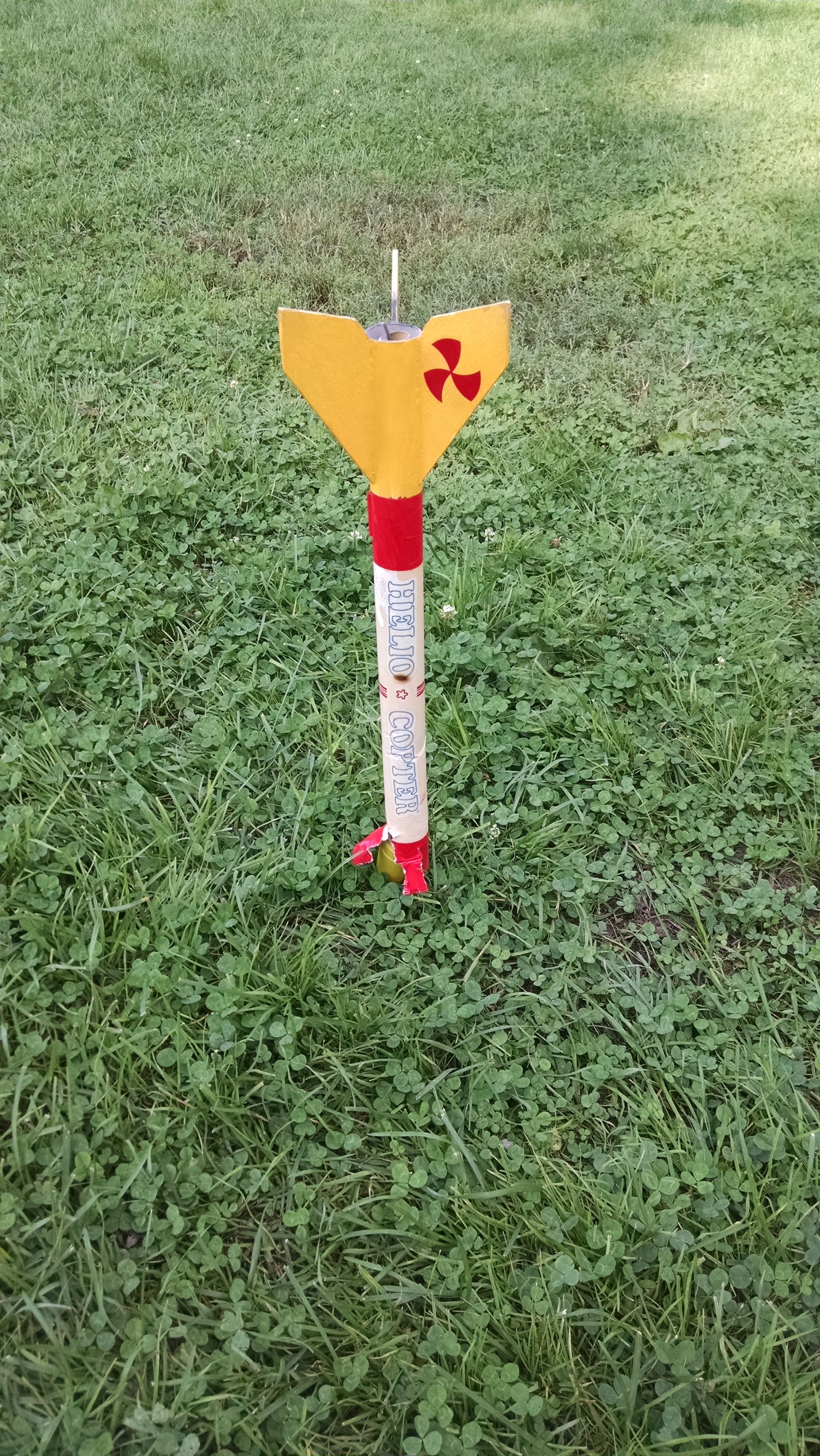 This rocket in BT-55 based and flies on 18mm motors. The nose cone uses helicopter recovery and the body uses a plastic parachute. My model also dates back to the late '80s. Parts included: - BT-55 body tube - plastic nose cone - a plastic hub and three plastic blades - three rubber bands - three balsa fins - 18mm motor mount - launch lug - rubber-band shock cord - plastic parachute The ...