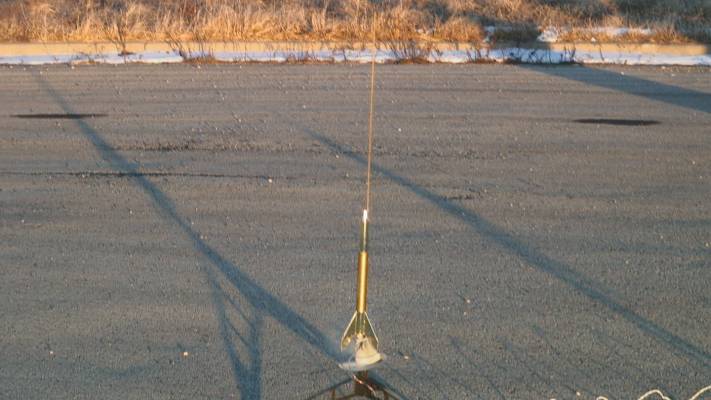 First flight of the Altimeter Two - inserted into the body tube with the parachute. Very low flight. Rocket split at parachute deploy. Rocket body crashed about 5 yards south of launch site. Bob recovered. No damage. Nosecone descended on parachute and landed about 15 yards east of launch site. Daniel recovered. No damage.