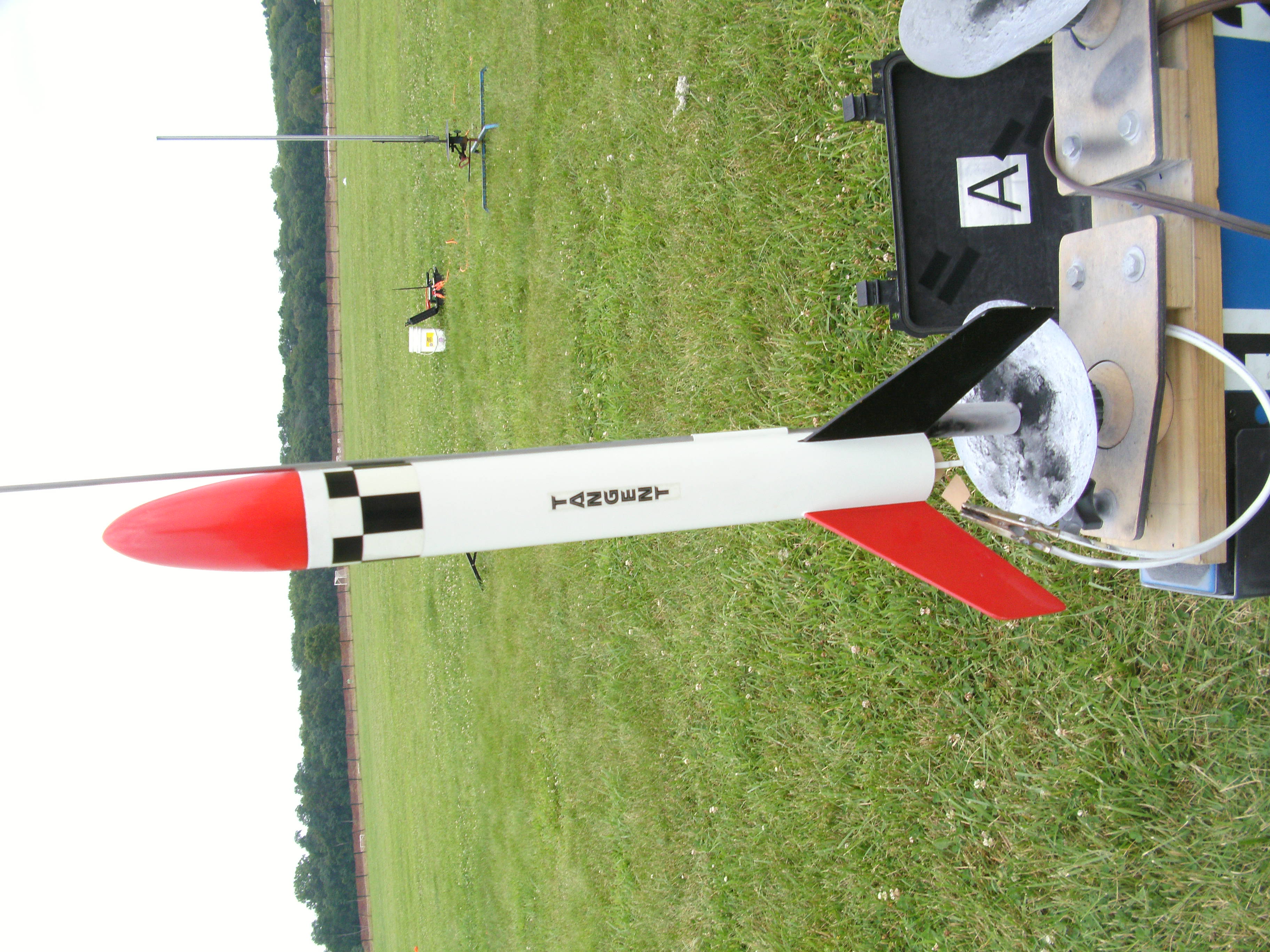 ( Contributed - by Dave Stout) Brief: The Tangent is a single staged sport rocket. It is built with traditional methods and materials with a couple of new twists. Construction: The Tangent came in a bag with 1 laser cut balsa sheet, one beautifully die cut sheet of centering rings, a balsa nose cone, and a 1/8" fabric shock cord about 2' long. It has a single paper MMT and a ...