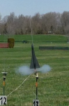 The rocket recovered under an 18" nylon 'chute. I has expected to snap one of the tip winglets off but, nope, it recovered perfectly.