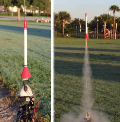 This 22nd launch probably got to 300' with a loud pop from a strong ejection charge. The ribbed plastic streamer brought it back close.