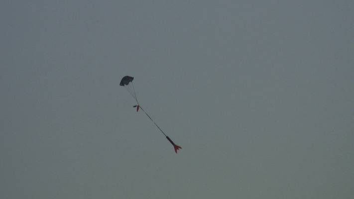 Launched with the Altimeter Two in the body tube. Good flight. Very high, but visible throughout. Parachute deployed and opened. Daniel caught at 250 degrees, 30 yards from the launch site in the basketball court. No damage. Altimeter Two only recorded some data about the flight.