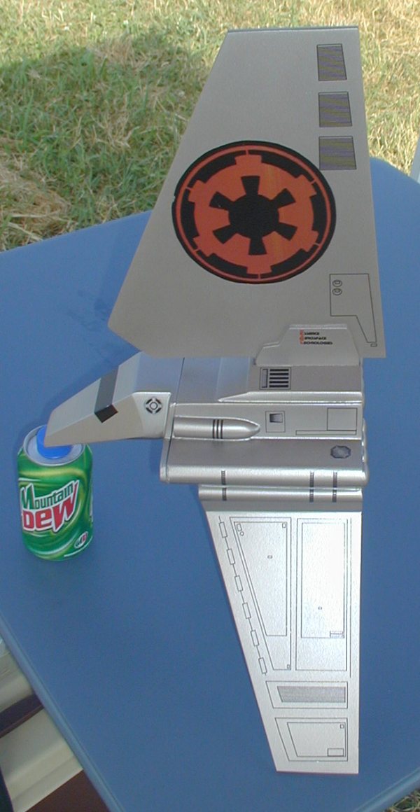 Pic 44: Close Up Upon landing the upper fin cracked (in the most vulnerable spot). It will fly again after I repair the fin. But you won't get too many out of this with the balsa fins. I think I would recommend a stronger fin and more nose weight, but it just might not be possible in higher powers! Here's my 2nd flight on a G38-4 VIDEO - MPEG The end! |