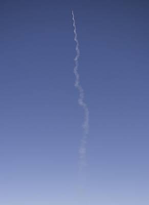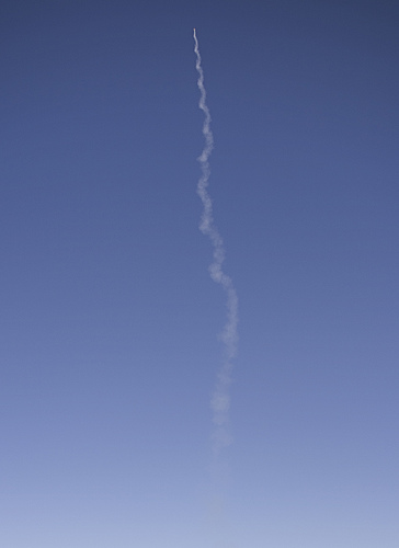 Perfect, corkscrewing flight (fins are intentionally canted. Popped fin on landing, already repaired.