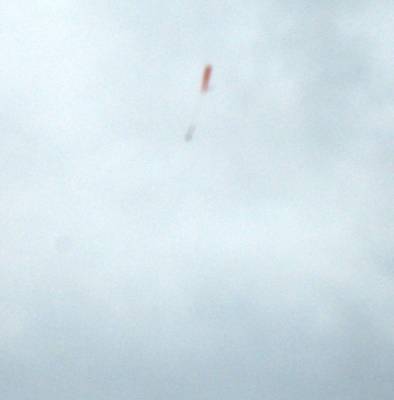 Last flight of the day. Rocket went up to approximately 1000 ft.,and the streamer deployed with the nose cone up. Landed closest to the pin at 10 ft from the launch pad.