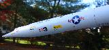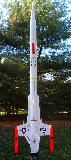 The Interceptor: This rocket kit is the new release of the Estes Interceptor. It flies on 18mm B and C motors. This kit was modified with an ejection-gas baffle and Kevlar shock cord mount, and an Iris Altimeter Payload Section. After 6 months, it's finally ready. Construction went well, but painting using bargain-price Home Depot paint resulted in "orange peel" finish, which had to be sanded off - TWICE, and re-applied. The paint then reacted with the primer (SAME BRAND!!) and crinkled and cracked the finish. Re-sanded again and then used the expensive but acceptable Testors paint for $5 per 3 oz can. Clear-coat, decals, then 3 more clear-coats and finally it's done. With the generous glue, extra paint and the added electronics bay, she weighs in at 164.5 grams (5.6 oz.) and is 3.2" longer than stock. I'll plan to use the shorter ejection motors than recommended, just in case it's a little too heavy. Typically for me, this model only passed a string-stability test after I added 17 grams of nose-weight on the base of the nosecone. (Am I doing them wrong??) We'll see how well she flies, but she sure is a pretty gal!