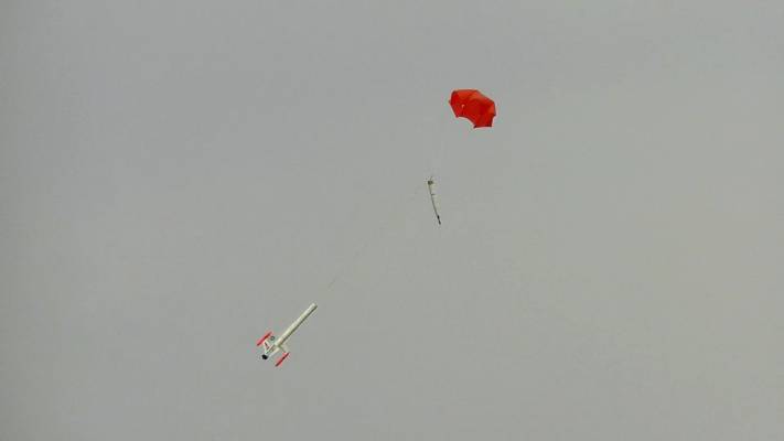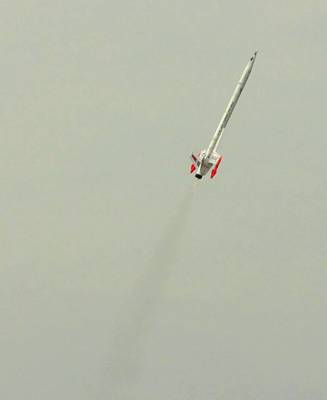 After a good ignition, the Interceptor Iris left the pad accelerating at 4.9Gs. It burned for 2 seconds, averaging 1.2 Gs of boost. It reached a top speed of 53 mph (record for a C6 motor), and coasted upwards for another 2.3 seconds. This time it took a turn for about 20 degrees, then 30 or so, but continued up.