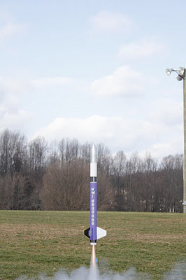 Nice flight. Fin damaged by nose cone. Shock Cord replaced w/ 8' PMI 3mm utility cord post flight