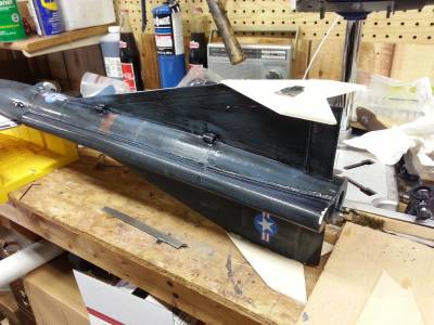 Dremeled the old fins off. Built new fins from basswood and epoxied them to the wing.