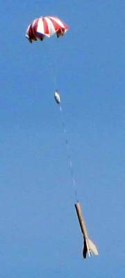 Very high flight for this bird/motor. Long delay. Chute popped immediately. Thermals. Duration of 52 seconds/target 40. Good for a 2nd place tie.