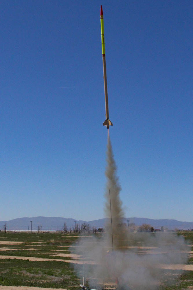Clone of my orginal Custom Rockets Engage. Mods are a payload section and papered fins. Otherwise its pretty much the same with the original's nose cone but a noew paint scheme.