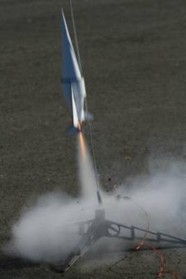 Gusty 5+ mph winds. Really straight climb and coast, ejected at apogee. Chute deployed, but it fell fast, snapped off top fins. Repairable