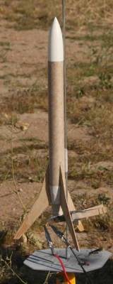 NARTREK Bronze flight attempt for 60 second chute duration. Chute not fully deployed - only attained 41 seconds. Popped fin on landing but easily repaired for a second attempt.