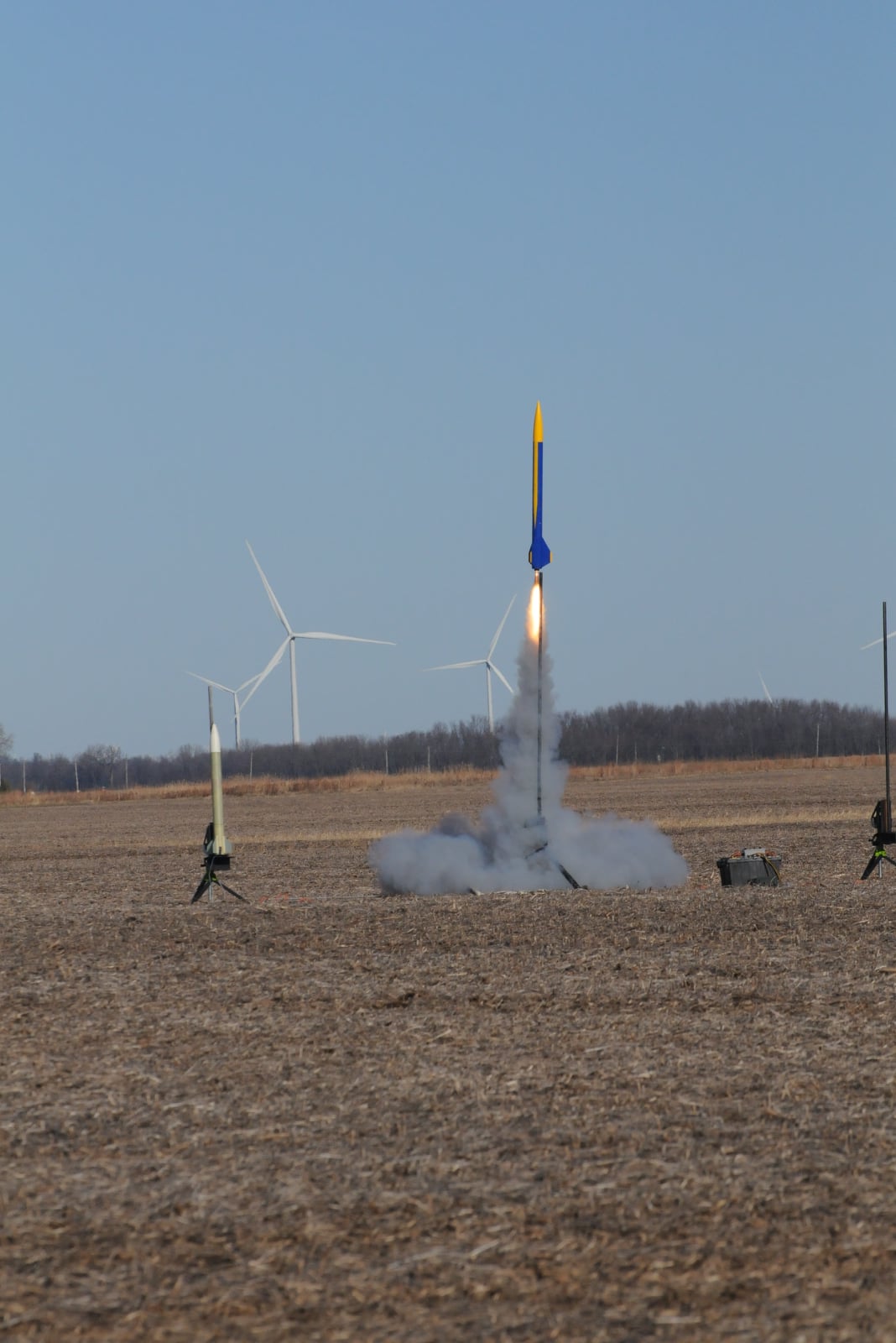 High wind and large chute combined to lift and pull rocket through the muddy field another 100 yds or so causing superficial water, mud, and stubble wear.