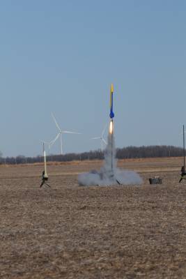 Main chute deployed at 1233'.  Rocket drifted ~400 yds downwind of launch pad.