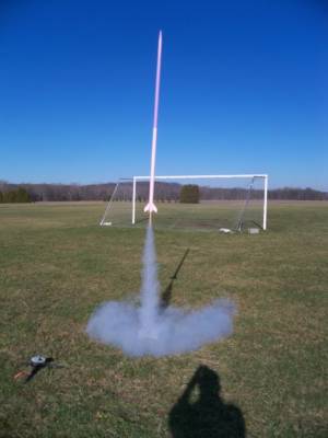 First flight after build. Split the rocket between the first 2 sections, not at the nose and added  a length of kevlar to the shock cord. Flew great, Ejection charge just after apogee. Not too far of a walk. My daughter Sarah's rocket.