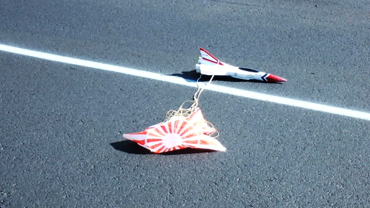 The rocket arced over at apogee and the ejection charge deployed the chutes.