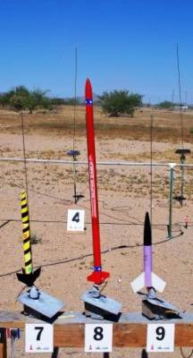 First flight for the Super Eagle. It's 41 inches long but got high enough altitude for me. Parachute ejection with soft landing with no damage. Great flight! Rocket is on pad 8 in the photo.