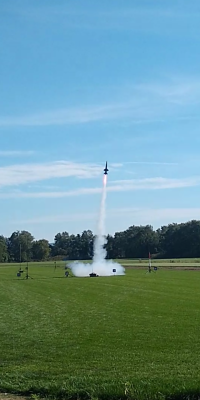 Beautiful launch up with nice red flame! Got lots of compliments (starting to have it's own fan club lol).   Recovery was iffy since I accidentally unhooked the chute blanket from my link and didn't notice since it was still on the chute lines.  On main deployment, it moved itself up the shroud lines and completely reefed the main chute. Still recovered fine with a bit of dirt and will fly again!  Love this bird.