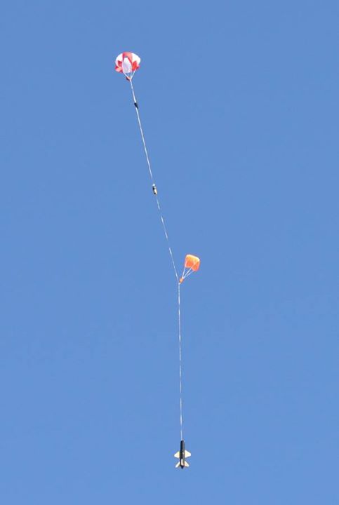 Great maiden flight and also my L2 Certification flight! Nice quick boost off the pad, slight weather cocking, good drogue, good main, great landing! Complex, but fantastic rocket!