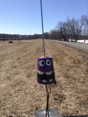 Scratch build cup rocket using Monsters University Art cup. I lost the last one after I sent it away on an E9, but boy was that a great flight! I've rebuilt, but this one has hair added for extra fun! I've also built this one to be fairly water-resistant for something of an "SUV" rocket.