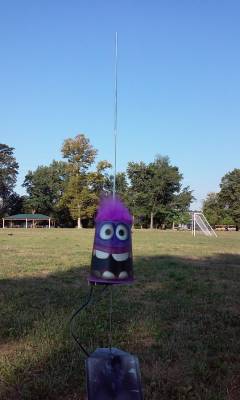 Scratch build cup rocket using Monsters University Art cup. I lost the last one after I sent it away on an E9, but boy was that a great flight! I've rebuilt, but this one has hair added for extra fun! I've also built this one to be fairly water-resistant for something of an "SUV" rocket.