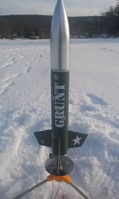 Rocket only lists D12 motors for use; however it also says can reach 1600 feet, so I saw no reason not to be able to use a C11-3...besides, it's only about 4oz! Motor seemed to be a very good choice since rocket lifted off fine with authority and reached about 700' (estimated). Ejection was just past apogee and rocket came down on streamer; however it hit some hard pack snow and broke a fin (even with heavy fillets and holes drilled through body tube for fin glue points!). I think having 3 fins increases the chance of breaking a fin on landing compared to 4 fins in my opinion since there's 25% less fin to disperse the landing force. I may try a small chute next time.
