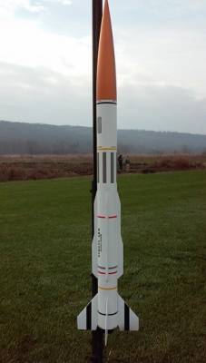 First launch at Radical Rocketeers!  Nice smoky and "crackly flight straight up, but arcing over slightly near apogee...deployment just a hair after apogee and good chute and recovery.  Crowd seemed to like this rocket on this motor!