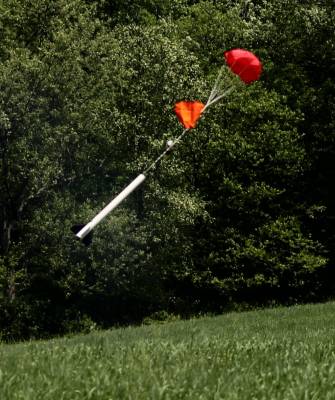 Perfect straight launch classic ejection with full parachute deployment. Picture perfect decent and recovery. Fin detached Upon landing. Love flying this rocket. Very graceful. Next
