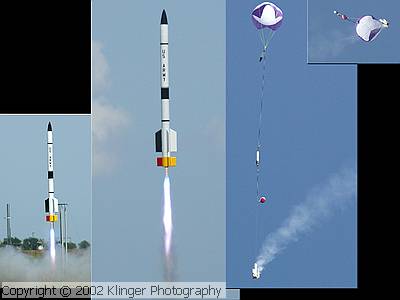 The photos are taken by Marc Klinger, a professional photographer. In his own words, "The Rocket Screen Saver is the first major project from Klinger Photography and combines three of my passions, photography, high power rocketry, and computers. I had almost 2000 source images to work with for creating this project. About 1800 came from LDRS XXI (the Tripoli national high power rocket launch), held in July, 2002 at Amarillo, Texas. The remaining source images came from a local Michigan Team-1 high power launch held in April, 2002 at Three Oaks, Michigan. From those 2000 images, I used about 400 to create 140 collage images that make up the screen saver. Each image was created with an optimal display resolution of 1600x1200."