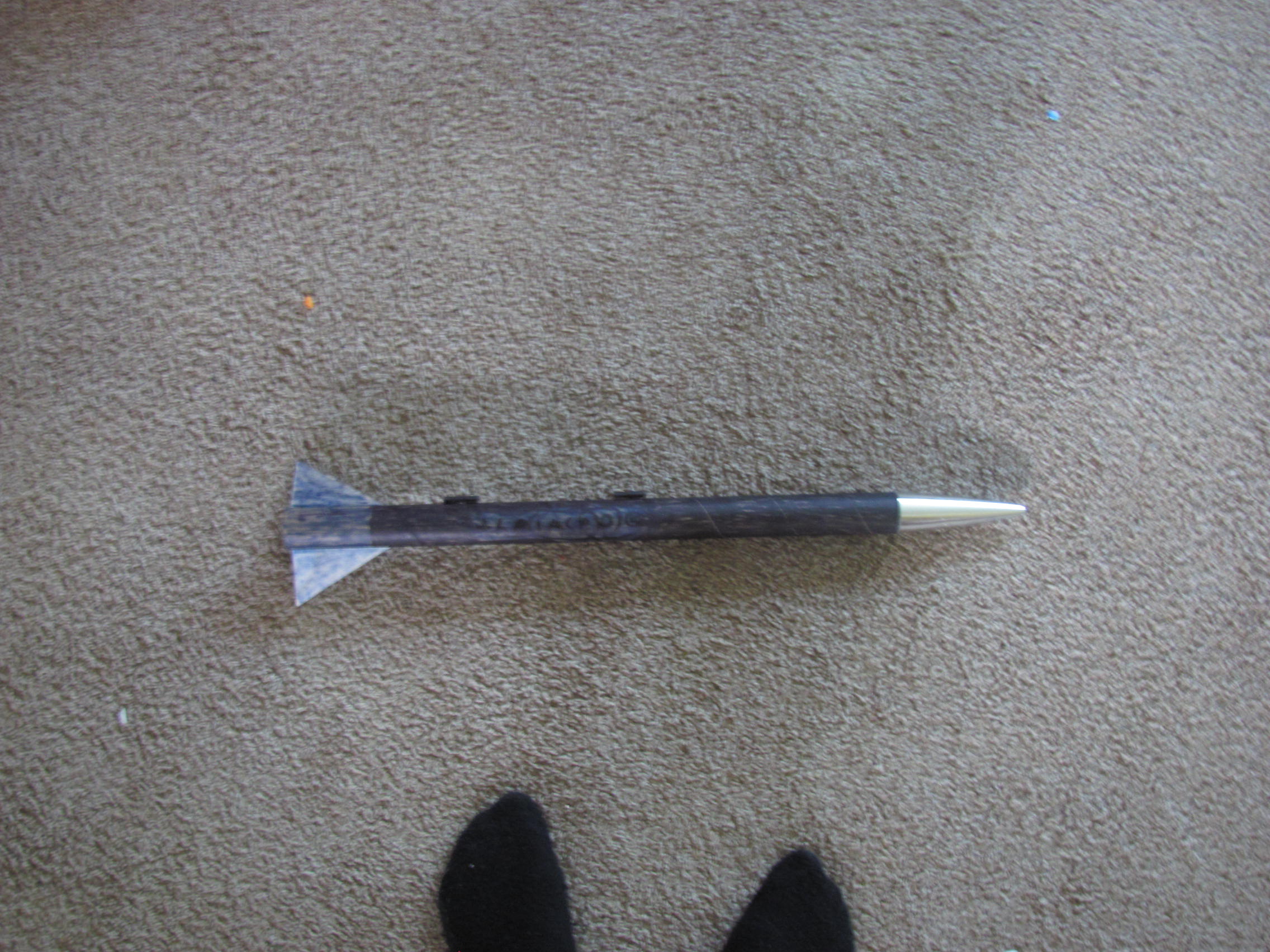 It is a scratch built rocket I made. It went on a C11-3 for its first flight and went about 300 ft. but, it was very windy when we launched it.
